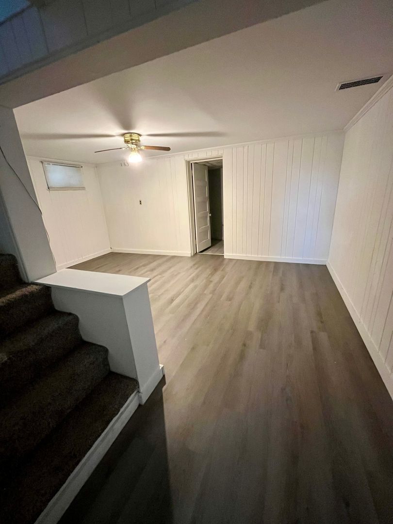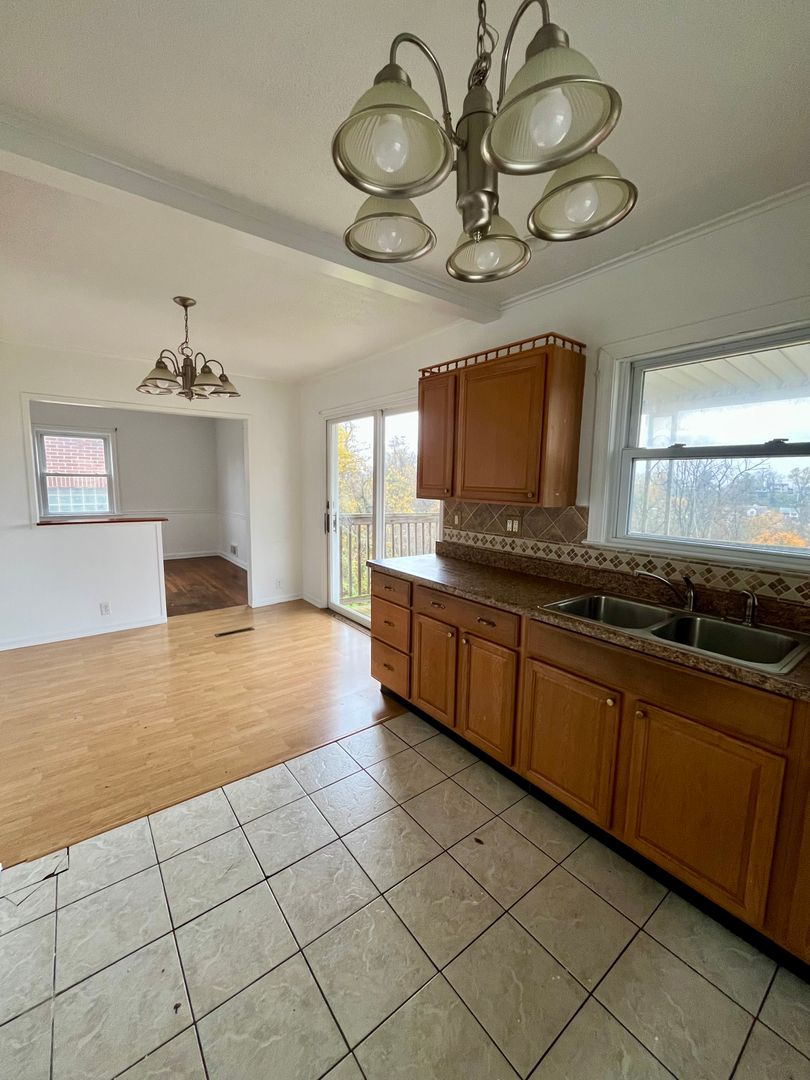 This single family house features 3 bedrooms, 2 baths and 1,042 square feet of living space. The main floor has a large living room, full bath, bedroom, dining room, kitchen nook and kitchen. Just off the kitchen nook is a full size deck with ample space for outdoor furniture and a grill. Upstairs has a large carpeted bedroom with plenty of closet - storage space. The oversized basement has a rec room, another bedroom, a room that could be a den/office and a storage room. Full bathroom with walk-in shower . Utility room with washer-dryer hookups. A second deck can also be accessed from the basement. Tenant is responsible for all utilities, lawn care and snow removal. Security deposit is required with a one year lease. This house is not HUD approved and is not pet friendly.