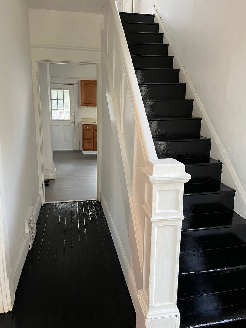 3 bedroom home with one bath near stores, restaurants and bus line. Front porch facing Ridge Avenue. Living room, dining room and kitchen are all located on first floor. Three bedrooms and bath on second floor. Unfinished basement with washer and dryer hookups. Off street parking near back porch entrance. Tenant pays all three utilities and is responsible for lawn care. Security deposit required with one year lease. This home is not HUD approved and is a “no pets” rental.
