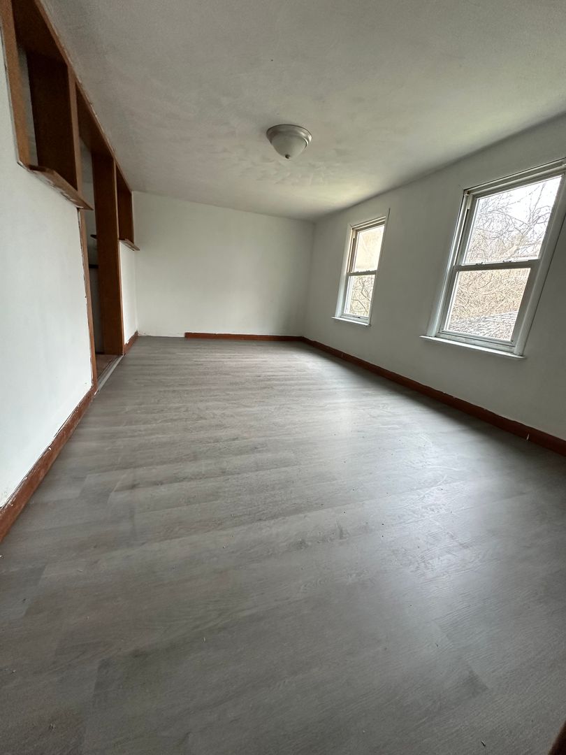 Three bedroom house with a unique layout sits as the last house on a dead end street. Upon entering the front door you will encounter a family room, oversized living room and all three bedrooms. The kitchen is located in the basement along with another family room with new flooring. Dining room area with new flooring is directly off of the kitchen. Washer/Dryer hookups and a large unfinished storage area. Door in kitchen leads to backyard. Tenant pays all utilities at this rental and is responsible for lawncare and snow removal. Limited street parking in front of the house is available. Security deposit is $950 with a one year lease. This house is not HUD approved and is not pet friendly.